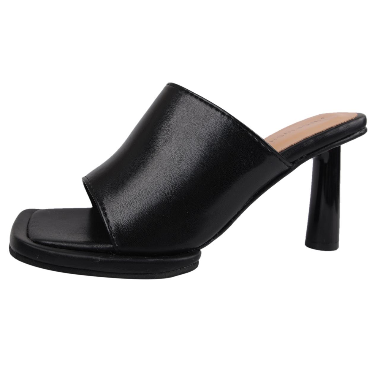 модные сексуальные розово-красные туфли на высоком каблуке 2024 года, летняя женская обувь с квадратным носком, однотонные босоножки, шлепанцы с открытым носком и круглым каблуком, пантуфли женские 35 чёрный