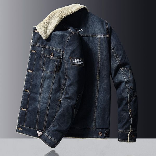 мужская джинсовая куртка мода зима весна мода джинсовая шерсть пальто прохладно теплая зимняя куртка высокое качество куртки для мужчин разм, Black