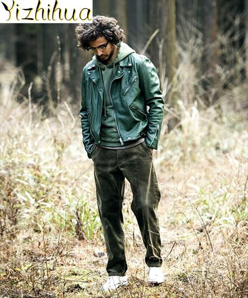 мужская кожаное пальто, сексуальное зеленое кожаное пальто, мотоцикл бесплатная доставка, Black