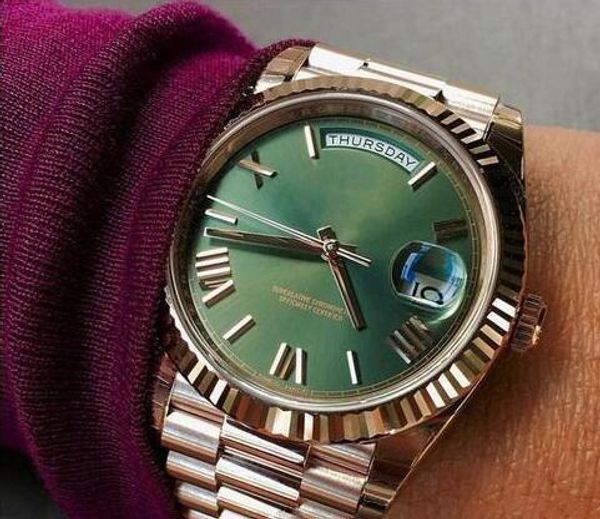 мужские часы зеленое лицо розовое золото ремешок из нержавеющей стали часы Daydate м