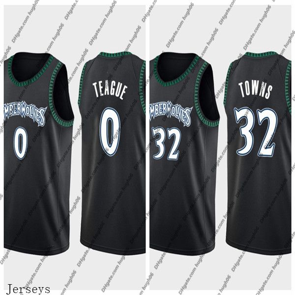 мужчины миннесота timberwolves. 0. джефф teauge 32. карл-энтони города баскетбол черные классические майки, Black