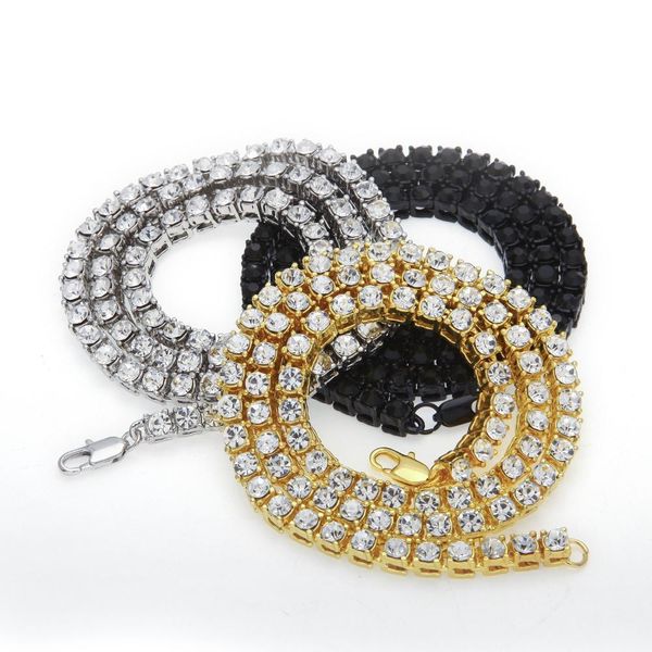 мужчины hip hop bling bling iced out теннис цепи 1 роу ожерелья обильный обломочный серебро / золото / черный / розовое золото цвет мужчины, Black