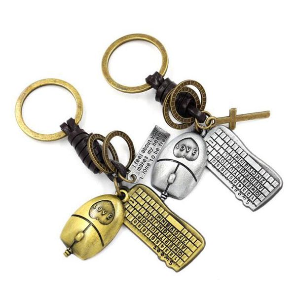 натуральная кожаная кожа озел из цинкового сплава милый брелок 30 мм ключей кольцевая мышь и клавиатура модель брелки серебристый цвет wmttb