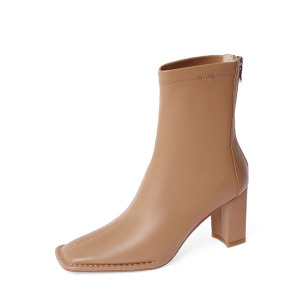 натуральная кожа высокие каблуки сапоги топ сапоги качества лодыжки женщина осень зима назад zipper wedding night club, Black
