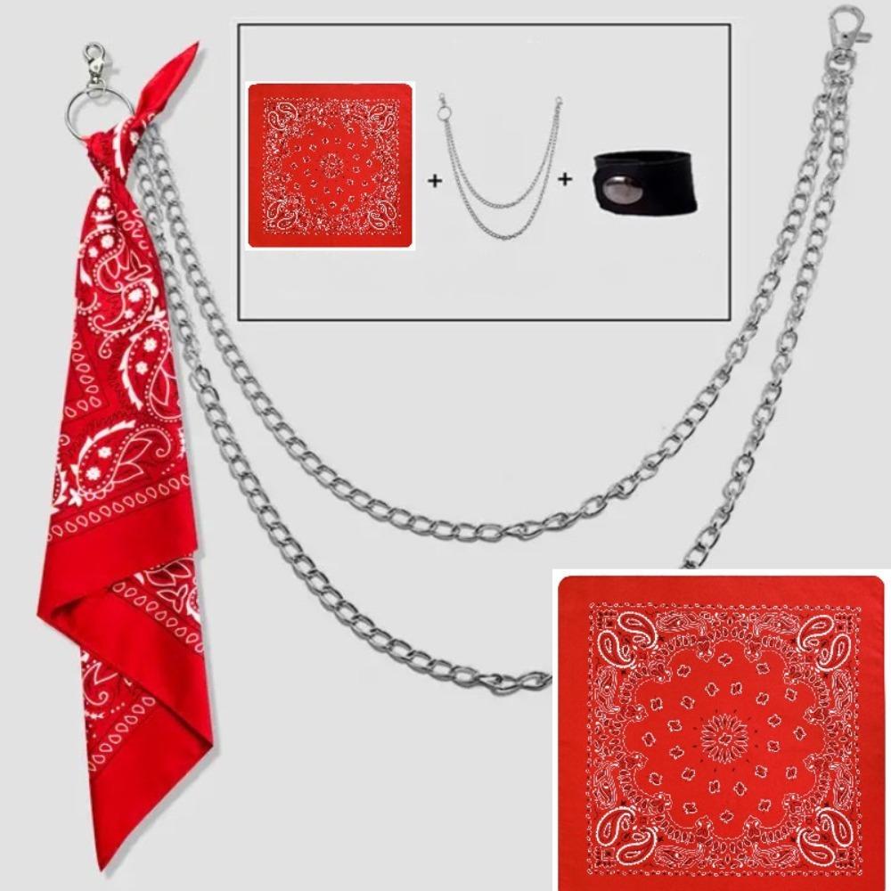 на джинсы квадратный шарф цепочка корейская уличная цепочка для брюк ремень украшение квадратный шарф цепочка для брюк Red with chain