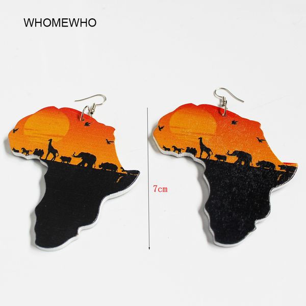неполное вуд животных картина африка карта падение серьги моды деревянные afro african hiphop геометрическая уха ювелирные изделия, Silver
