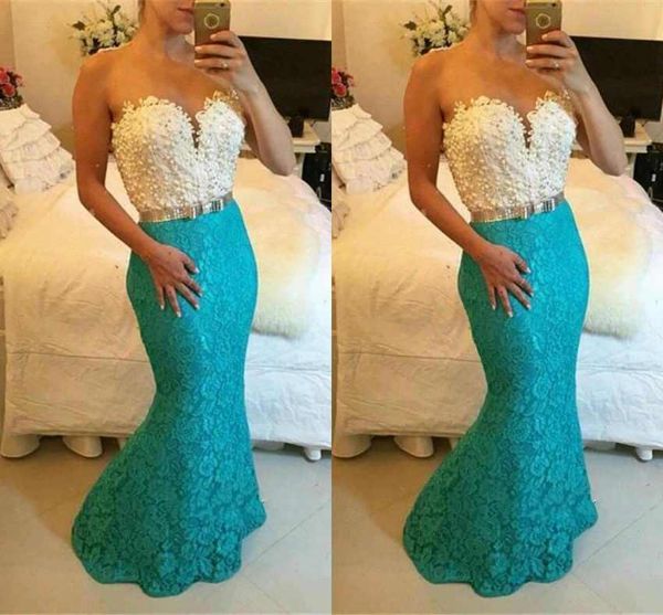 новая мода без рукавов русалка пром платья кружева аппликации длина пола вечерние платья, Black