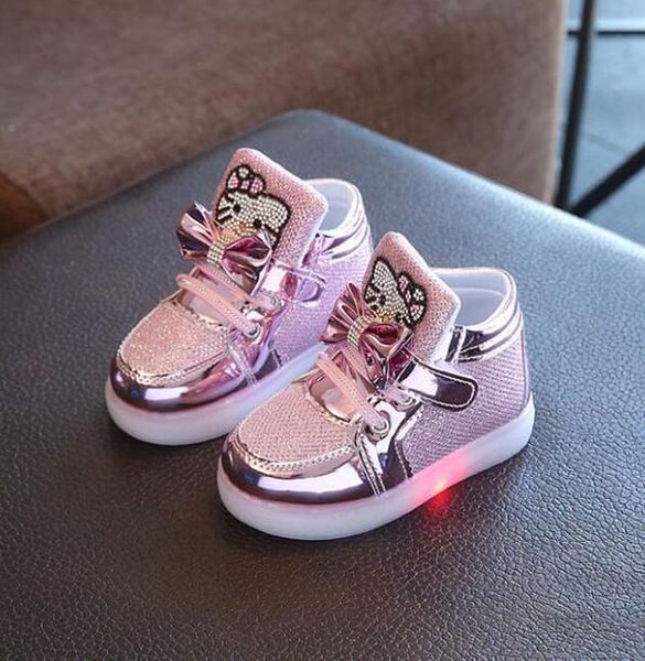 новая мода весна осень дети светящиеся кроссовки детская обувь chaussure enfant kitty cat обувь для девочек со светодиодной подсветкой 21 30, Black