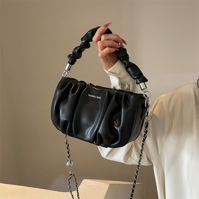 новая однотонная плиссированная сумка через плечо из полиуретана, легкая и удобная ткань, детальный дизайн, большая вместимость