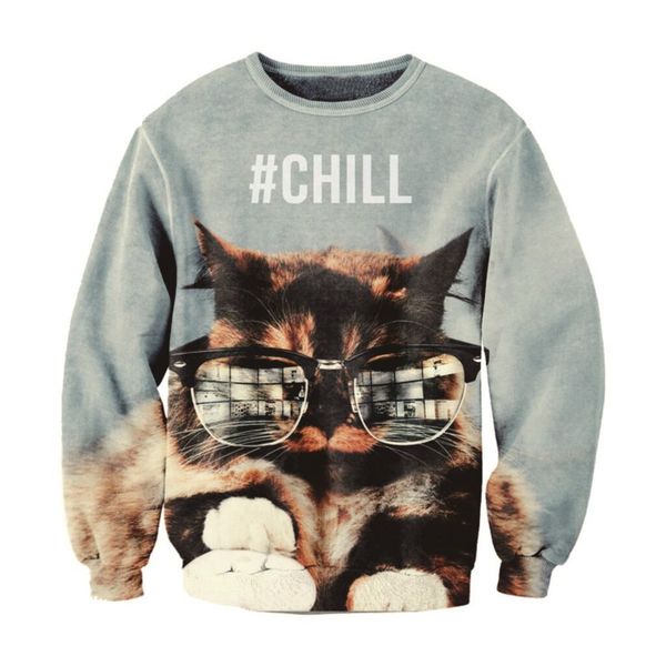 новейшая мода chill cat в очках толстовка 3d печати одежда женщины мужчины unisxe смешно толстовка повседневная верхняя одежда пуловеры топы, Black