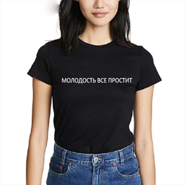 новое лето женщин футболки белых русское письмо начертание молодежь простит все printed стиль casual топ женского tshirt, White