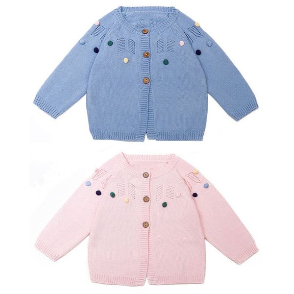 новые дети верхняя одежда девочки хлопок вязать длинными рукавами руки из шариков принцессы основывая рубашки весна осень 1, Blue;gray