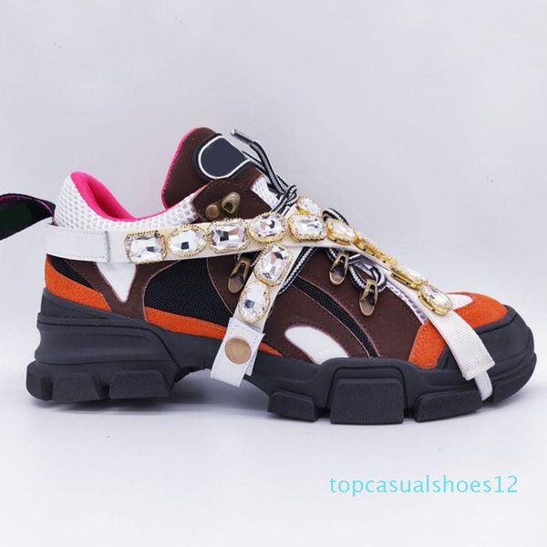 новые flashtrek sneaker с съемные crystals mens роскошная обувь повседневная мода роскошная женская обувь кроссовки 35-45 t12, Black