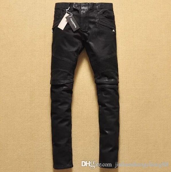 новый бренд мужские черные джинсы для мужчин колено складка покрытие воском локомотив джинсы брюки мотоцикл брюки повседневные джинсовые брю, Blue