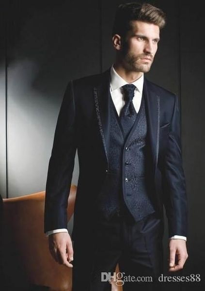 новый дизайн one button темно-синий жених смокинги groomsmen лучшие мужские костюмы мужские свадебные пиджаки (куртка + брюки + жилет + галс, Black;gray