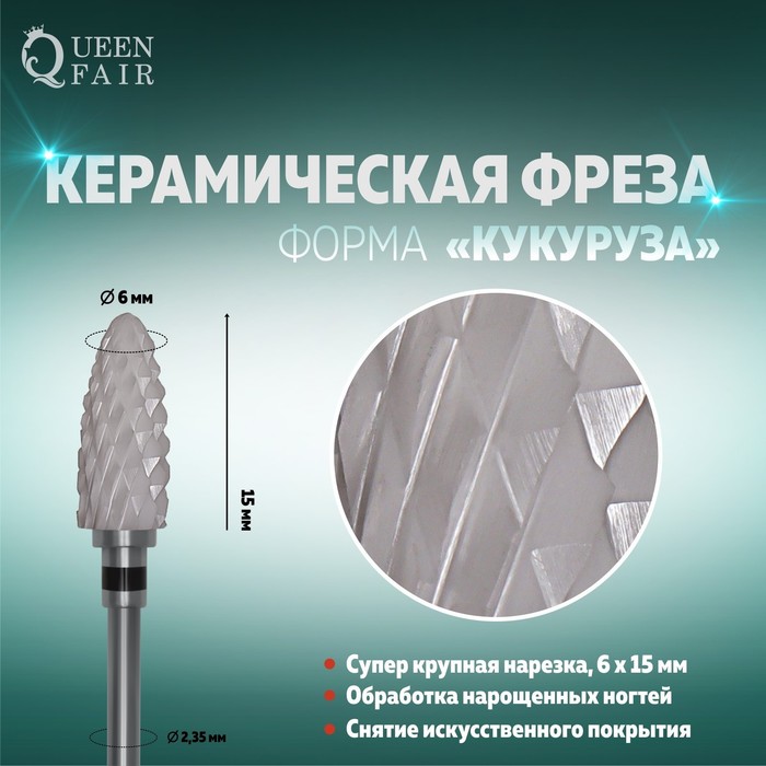 Фреза керамическая для маникюра «Кукуруза», супер крупная нарезка, 6 × 15 мм, в пластиковом футляре, цвет белый