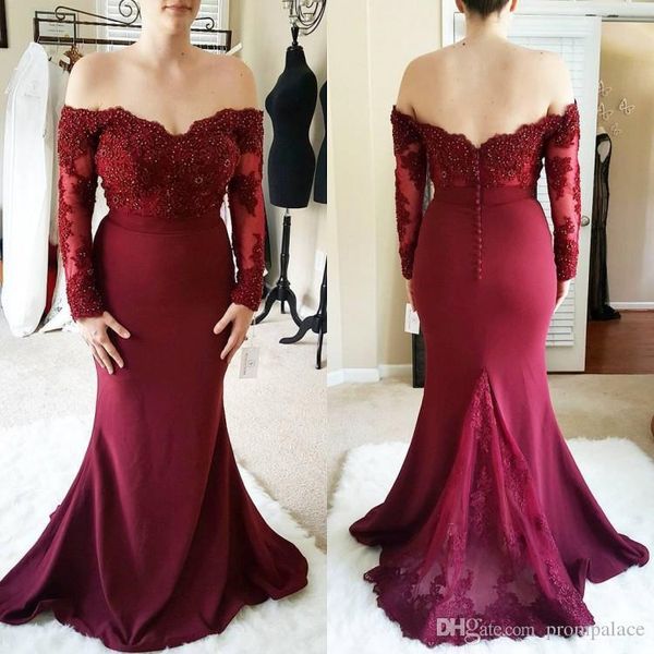 новый темно-красный русалка пром платья с плеча длинные рукава backless длина пола вечерние платья вечерние платья wear партии одежды де бал, Black