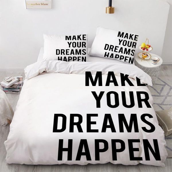 обложка 3d печатный настраиваемый дизайн белый письмо king полный твин одеяло установить пододеяльники утешитель case комплект постель