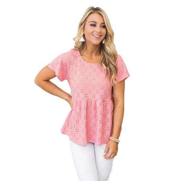 одежда olwpirncess 2020 весна и лето новый женский круглый вырез полый короткий рукав, Black;gray