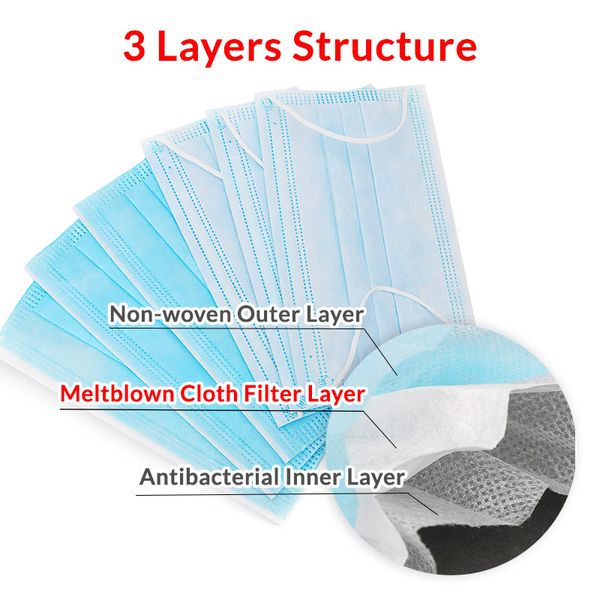 одноразовая маска для лица 3-слойная ушная петля пылевые маски для рта крышка 3-слойная нетканая одноразовая пылевая маска мягкая дышащая на