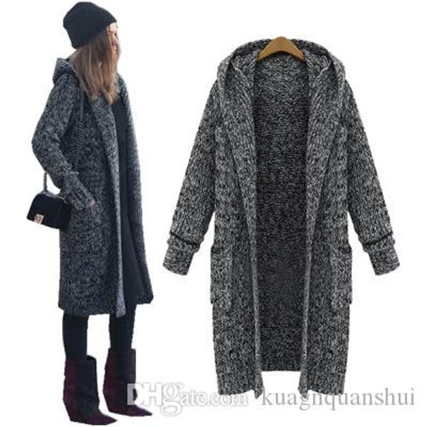 оптовый нового 2018 нового большого размера зима свитера пальто вскользь свободный супер длинный с капюшоном утолщения вязать кардиган женщи, White;black