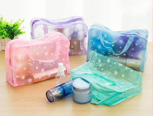 wholesale chinamakeup bags cosmetic bags transparent waterproof pvc bag floral print for toilet bathing pouch travel free shipping e004
