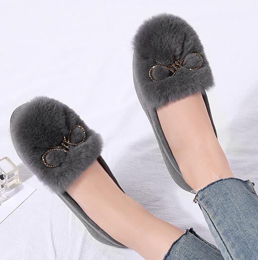 осенние новые меховые туфли с кристаллами, металлическими бабочками, неглубокие мокасины, высококачественные кроличьи меховые теплые зимние женские туфли, мокасины-слипоны 5 серый