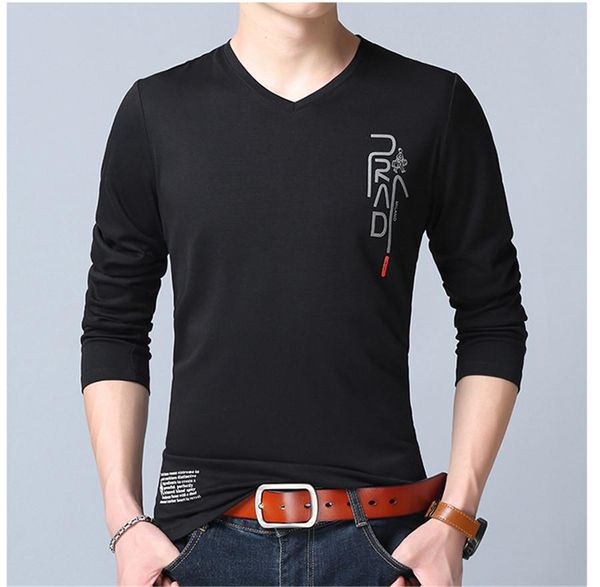 осень новый хан издание мужская футболка узкие комплекты молодежные v-образным вырезом с длинным рукавом хлопка футболки мужские модные футб, White;black