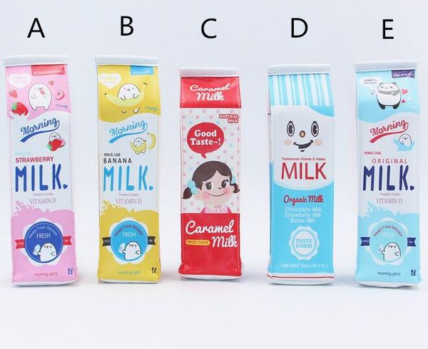 пеналы мультфильм молоко бутылка школа пенал симпатичные pu pen сумка для хранения сумка корея канцелярские материалы офис школьные принадле