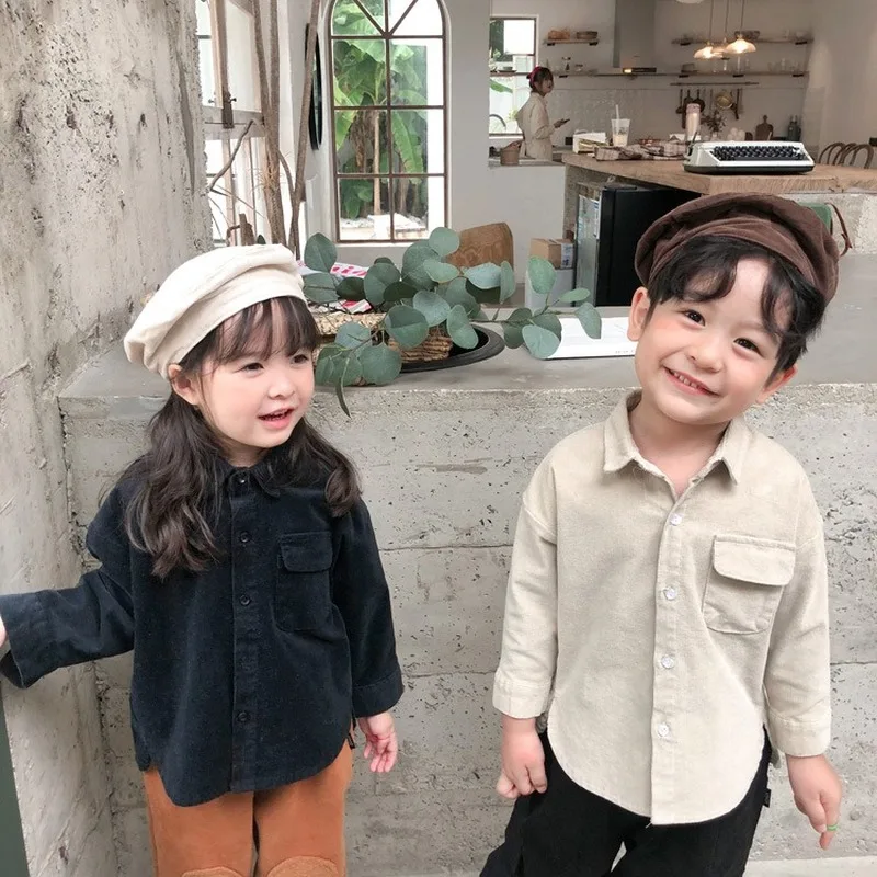 Korean retro children's shirt boy's shirt autumn and winter 2019 boys corduroy shirt baby girl blouse kids clothes girls 8 to 12