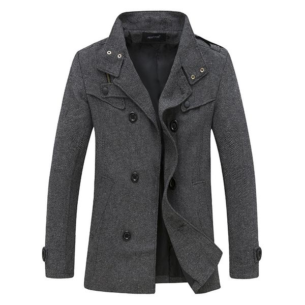 плитка зима мужчины елочки двухрядного стенд воротник молния пальто, Tan;black