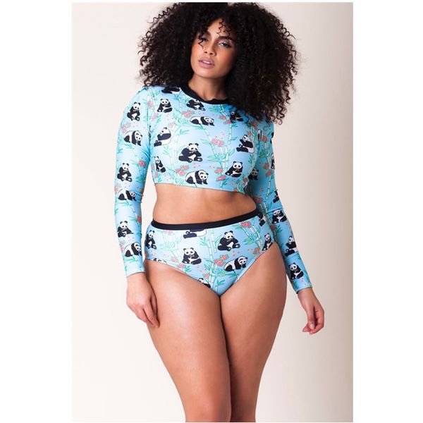 плюс размер купальники для женщин crop tops купальник бикини комплект 2019 летняя мода с длинным рукавом купальники леди панда печати пляжна