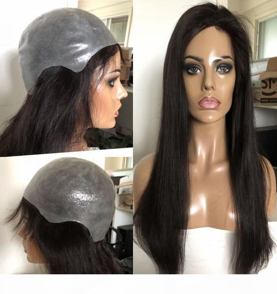 полного thin skin парик 9а класса top волосы качество шелковистого прямая девственница бирманских человеческие волосы парики силикон парик p, Black;brown
