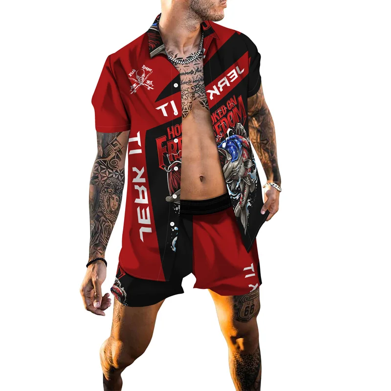 Гавайский брендовый мужской комплект рубашки для отдыха, лето 2022, шорты с коротким рукавом и принтом рыбы, комплект из 2 предметов, пляжный к...