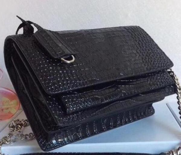 реальные кожаные сумки женщины новый дизайнер святой крокодил шаблон воловьей кожи серебряная цепь натуральная кожа роскошные crossbody сумк