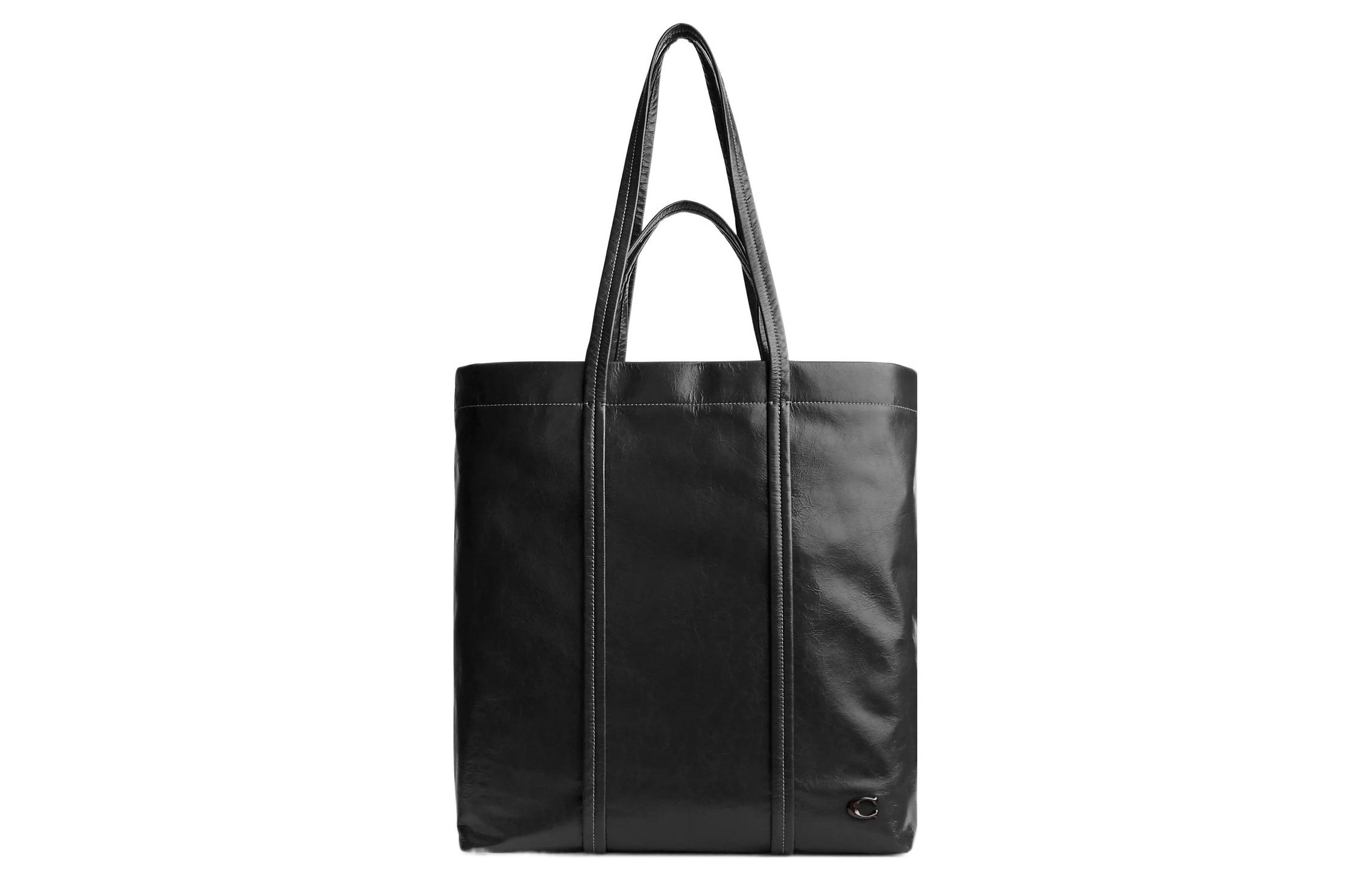 Кожаная сумка-шоппер, хозяйственная сумка, дамская сумочка, объемная мужская наплечная сумка черного цвета COACH
