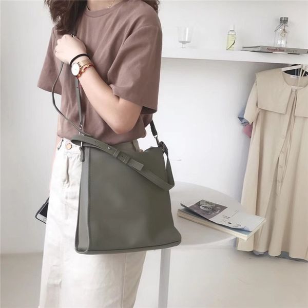 ретро большой емкости ведро сумка мода сплошной цвет pu женщины сумки на ремне casul небольшой лоскут сумки леди посланник crossbody сумка
