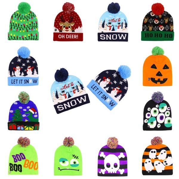 рождество led вязаную шапочку led хэллоуин рождество шапочки вязаные шапки мода зима теплая череп caps xmas хэллоуин шляпы помпоном болл