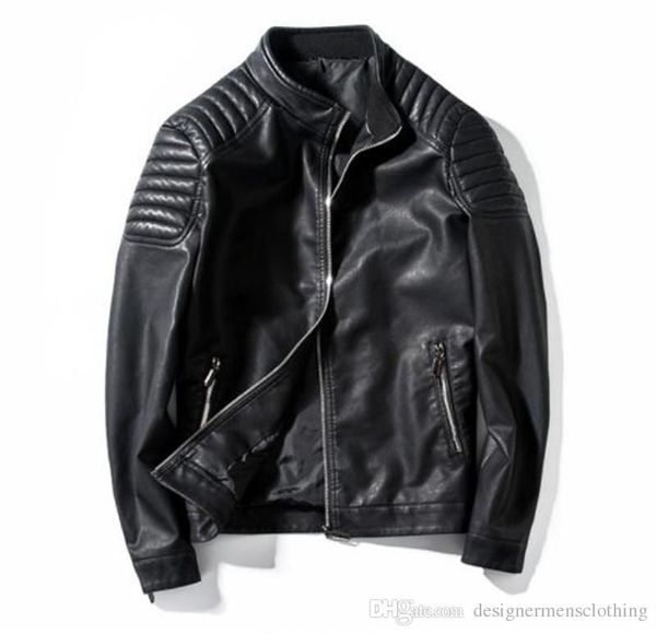 роскошная кожа pu куртки мужские пальто конструктора осени сплошной цвет куртки тонкий вскользь верхняя одежда высокого качества мужская оде, Black