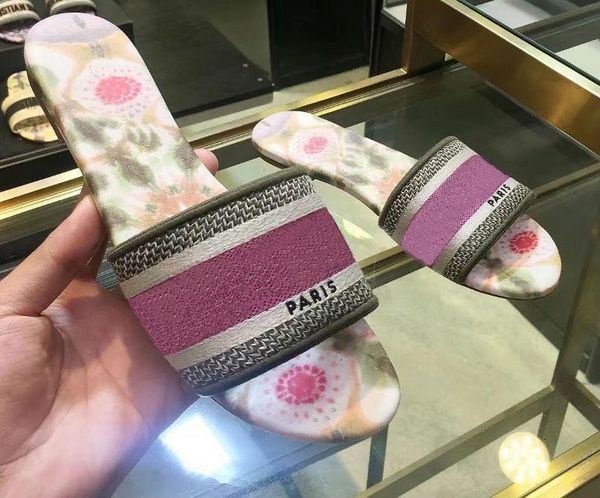 роскошь дизайнер кожа дамы сандалии лето плоский башмачок моды пляж женщина мультфильм большая голова трусы радуга письма тапочки 05, Black