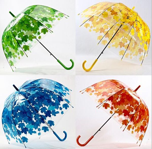 material: thicken pvc diameter: 80cm ,when open length: 82cm, when close package include: 8k umbrella package include :1 * umbrella easy auto open and close transparent cute cartoon leaves print cute bubble dome shape matching color hook handle see through clear umbrella canopy