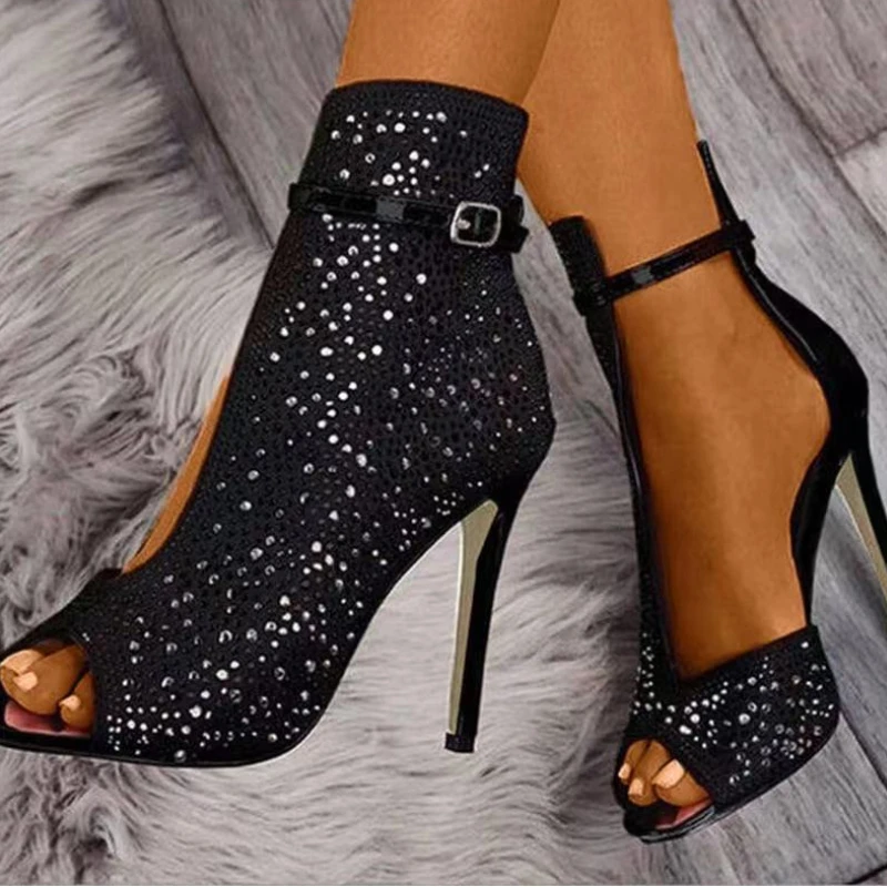 сапоги женские туфли женские 2022 тренд туфли на каблуке Стразы, летние женские ботильоны на высоком каблуке, Модные ботильоны с открытым нос...
