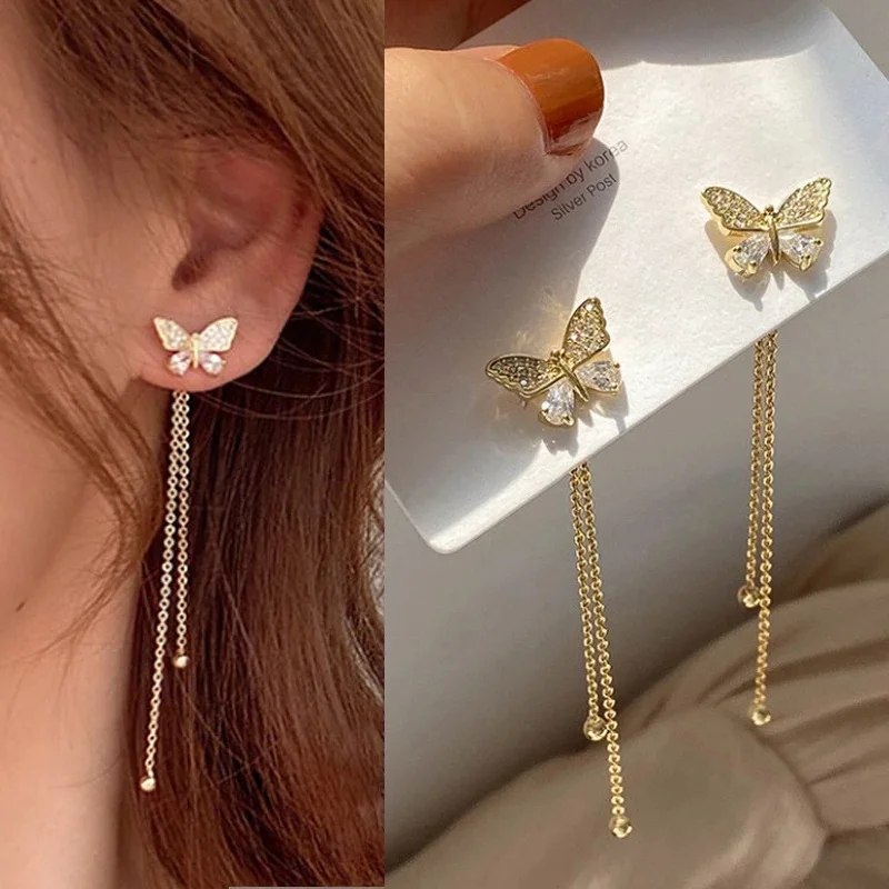 серёжки женщин импакт серьги женские новый год boucles d'oreilles bijoux femme 2023 Модные женские серьги-бабочки, кисточки, роскошные классические длинные...