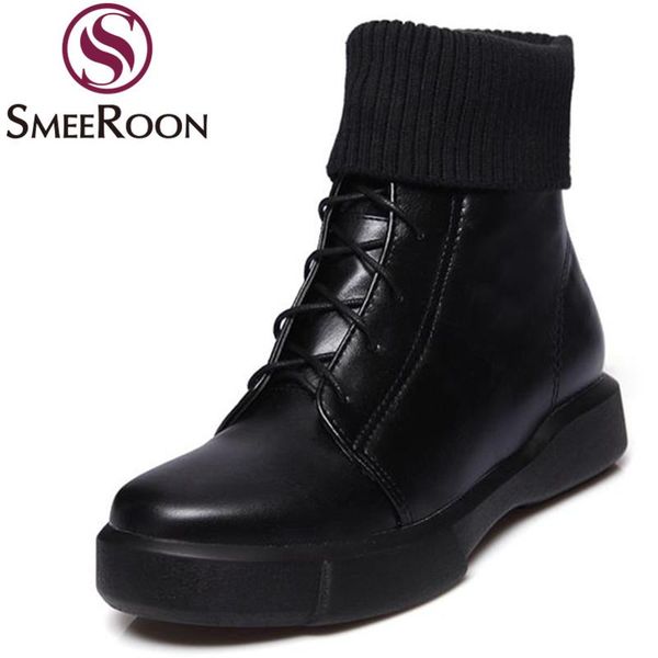смерун молодежь кружева женщина обувь круглая носок комфортабельные зимние сапоги кампусы деликатные ботильоны ботильоны 2020, Black