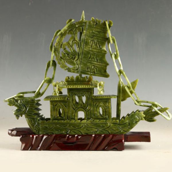статуя корабля 100% handmade восхитительная естественная нефрита рук-высеканная