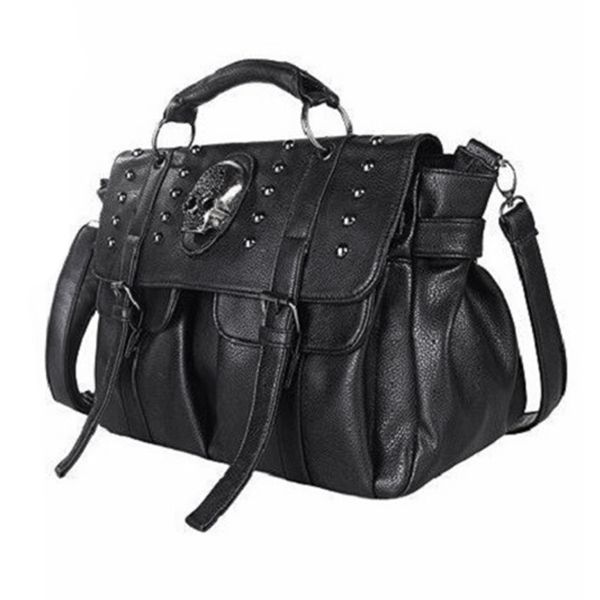 сумки на ремне леди мода сумка конструктор punk череп ривет all-match женские сумки черный большой tote