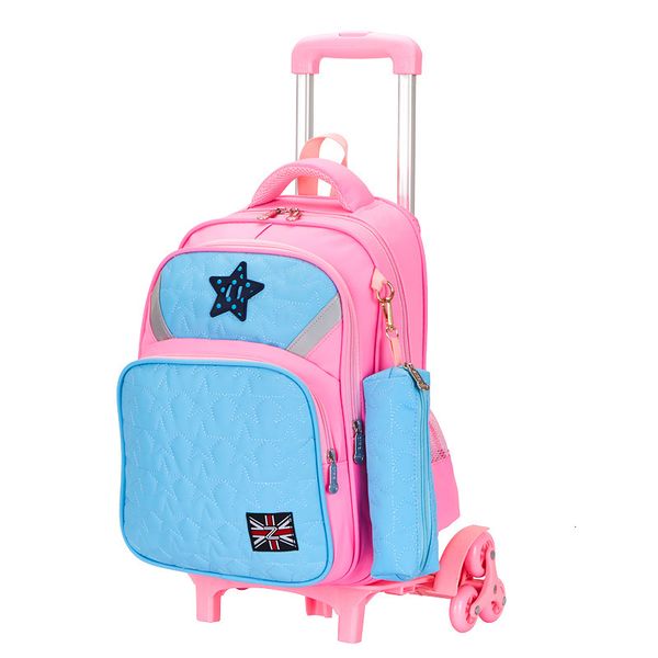 product: trolley bag +pencil case material: oylon age: 6-12 years old size: schoolbag: 30* 40 * 13cm pencil case: 6 * 4 *19cm capacity: book, pen, umbrella, cup, etc. function: folding floor, silent pulley, telescopic rod,can light the wheels