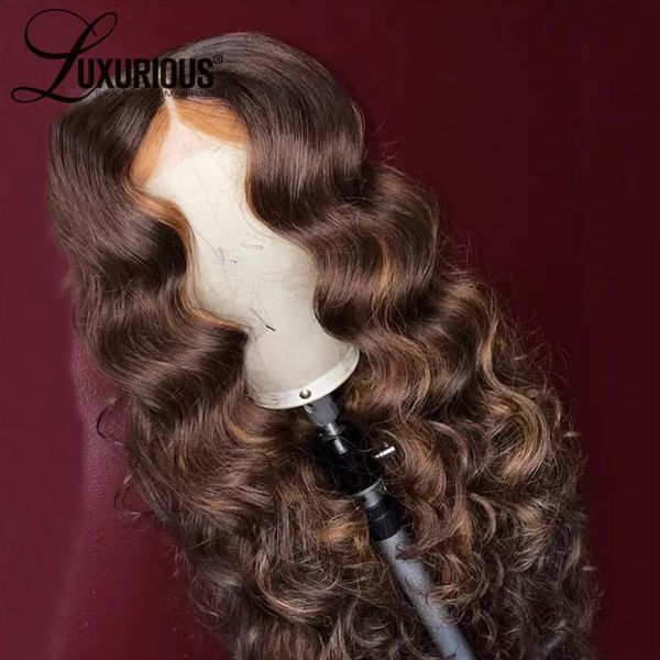 сыпучие объемная волна шатен цветное фронта шнурка человеческих волос парики для женщин перуанский # 27 honey blonde highlight 360 lace фрон, Black;brown