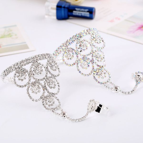 топ 2018 hot brides ювелирные изделия с бриллиантами открытое браслет кольцо одна цепочка полный бриллиант cane цепи hand backlet бесплатная, Golden;silver