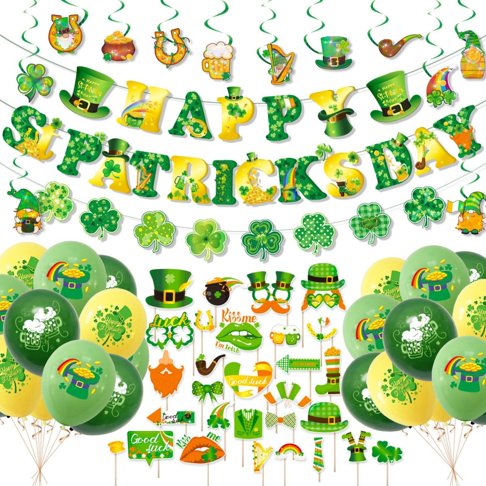 улица. Украшения для вечеринки ко Дню Святого Патрика, воздушные шары с флагом Ирландии, наборы для вечеринок, реквизит для фотографий зелёный